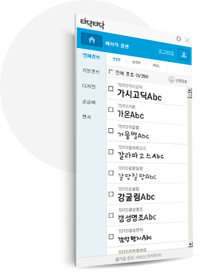 타닥타닥 폰트 서비스는 인터넷이 연결된 환경에서 사용가능합니다.